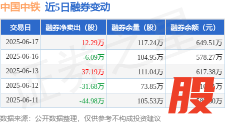 本站消息,6月17日快牛盘,中国中铁(601390)融资买入5430.33万元,融资偿还6428.73万元,融资净卖出998.4万元,融资余额18.23亿元。